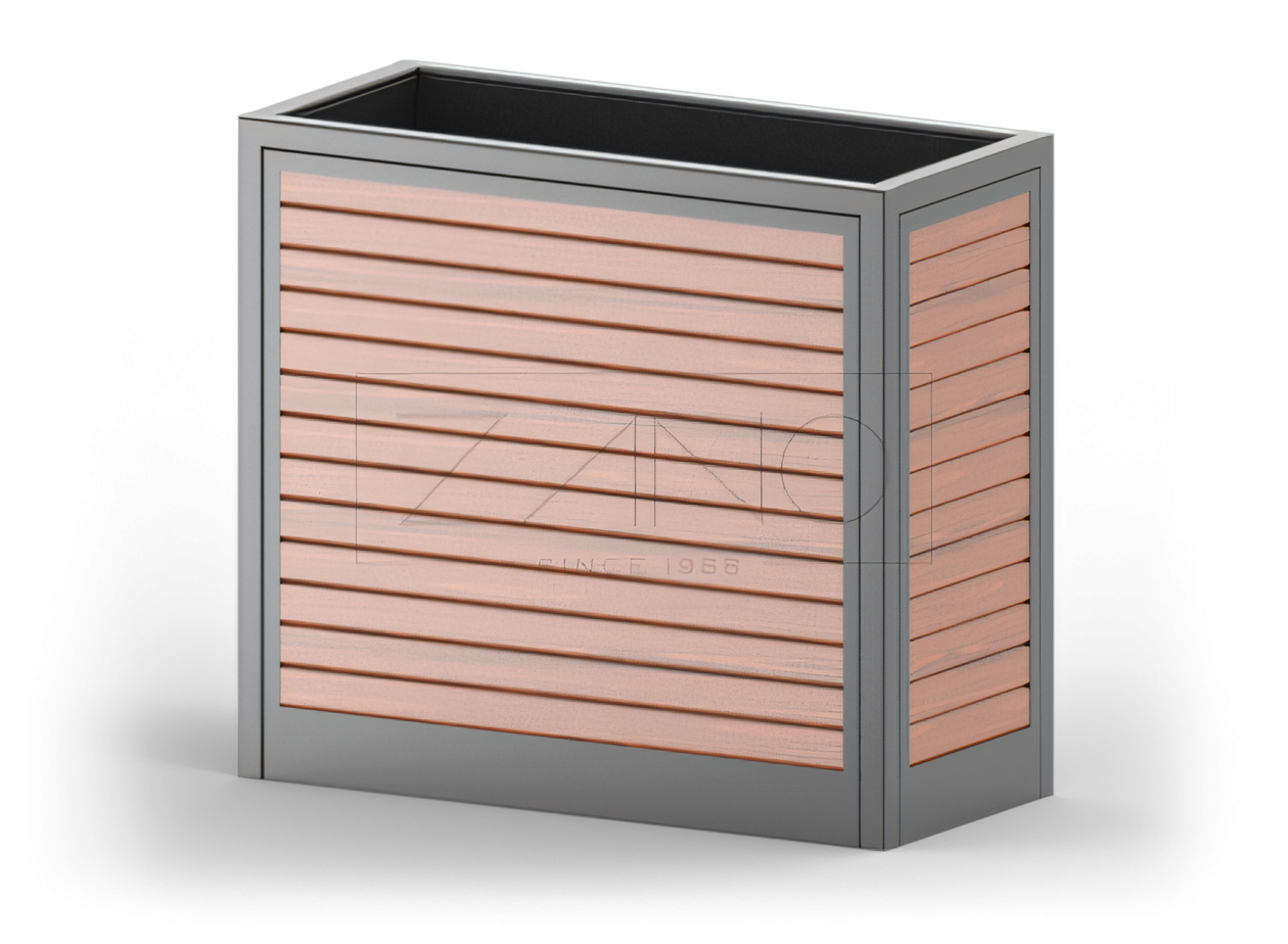 Linia Salver składa się z 4 donic o zróżnicowanych rozmiarach dopasowanych do potrzeb odbiorców. Salver to prosta donica o dużych możliwościach, którą z łatwością wkomponujemy w każdą, nawet tę zaaranżowaną już przestrzeń. Donica może byc wolnostojąca lub za pomocą kotwienia przymocowana do podłoża. Nienaganna i stabilna konstrukcja, której szkielet wykonany został ze stali a wnętrze uzupełnione deskowaniem. Deski o optymalnej szerokości nadają lekkości całości konstrukcji. Kolor desek oraz rozdzaj użytego drewna jest kwestią indywidualną i daje wiele możliwości. Gładka i profesjonalnie wykonana donica zachwyca minimalistyczną formą. Ty decydujesz o ułożeniu oraz ilości donic, wybierz Salver, który najbardziej do Ciebie pasuje.