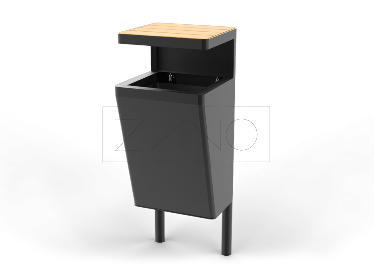 Kosz na śmieci Scandik to element w nowoczesnej przestrzeni miejskiej, którego nie może zabraknąć. Jego minimalistyczny dizajn z łatwością wpisze się w charakter większości miast, ulic, parków, bulwarów, placów, centrów handlowych, czy dworców. Jest to kontynuacja linii mebli miejskich Scandik, w skład, której wchodzą: ławki, donice miejskie, stacja solarna oraz kosze. Do wyboru istnieją różne wersje kosza: bez zadaszenia, z zadaszeniem i popielniczką umieszczoną w górnej części kosza, oraz różne wersje kosza recyklingowego. Kosz wykonany jest ze stali, wsparty na dwóch nogach docelowo przeznaczonych do wbetonowania. Do wyboru posiadamy stal nierdzewną lub stal węglową, ocynkowaną i malowaną proszkowo na wskazany kolor RAL. Zadaszenie kosza wykonane jest z stali i drewna. Do wyboru posiadamy drewno krajowe lub drewno egzotyczne. Zamiast drewna możemy zastosować laminat HPL, lub zadaszenie w całości wykonać ze stali. Dla wygody wymiany worków na śmieci kosz posiada wkład z blachy ocynkowanej, galwanizowanej.