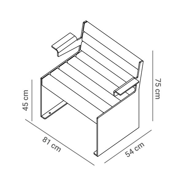 Fotel Simple idealnie komponuje się z pozostałymi produktami tej linii, takimi jak: kosze, ławki, donice i stoły. Nadaje się on niemalże do każdej przestrzeni publicznej. Jest to element, którego nie może zabraknąć w parku, skwerze, placu, czy przestrzeni biurowej. Fotel miejski Simple jest minimalistyczny, piękny w swojej prostocie. Dbałość o szczegóły i estetykę powodują, że jest to produkt bardzo elegancki. Dostępne są wersje fotela z podłokietnikami oraz bez. Użyte materiały do produkcji to wysokiej jakości stal nierdzewna oraz drewno świerkowe, lub do wyboru klienta stal węglowa, malowana również na dowolny kolor z naszej palety RAL, jak również drewno sosnowe, bądź egzotyczne, czyli Iroko albo Sapeli.