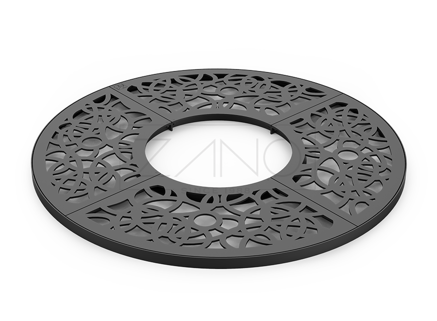 Kraty pod drzewa to bardzo pragmatyczne, a przy tym estetyczne urozmaicenie zielonych przestrzeni małej architektury miejskiej. Są one wykonane są z żeliwa albo grubej blachy metalowej, ciętej laserowo. Kraty stalowe pod drzewa oraz żeliwne kraty pod drzewa pełnią zasadniczo dwie funkcje. Przede wszystkim chronią one system korzeniowy przed uszkodzeniem, umożliwiając jednocześnie swobodny dopływ wody do systemu korzeniowego. Kraty pod drzewa Zano pełnią jednak także istotne funkcje estetyczne. Szczególnie w przypadku zastosowania w kratach pod drzewa blachy stalowej, rodzaj wycięcia, jego kształty oraz design poddają się nawet najbardziej fantazyjnym realizacjom. Na życzenie naszych klientów projektujemy kraty ochronne pod drzewa dopasowane do ich wszelkich oczekiwań…